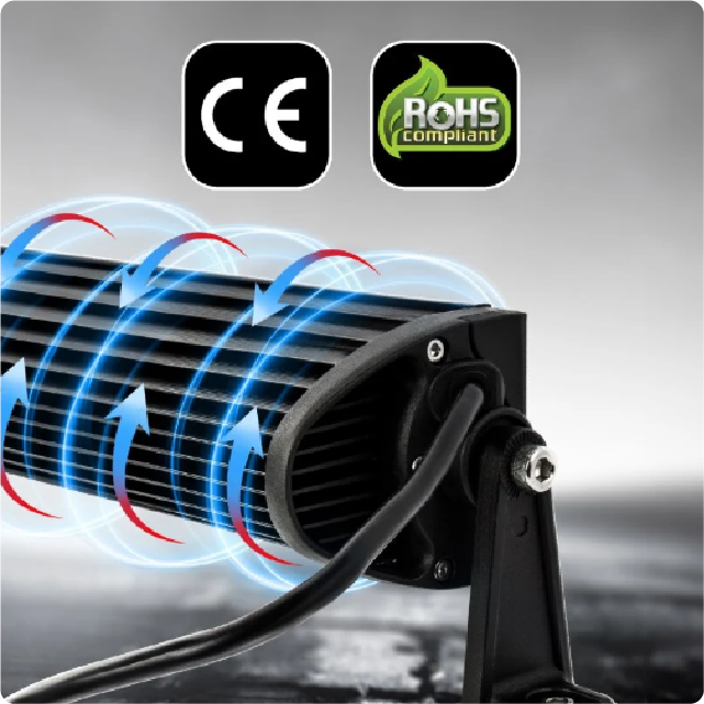 Powerful and durable lighting for any terrain. Equipped with OSRAM LED chips, they deliver high-intensity illumination in a compact, rugged design. Their UV-protected polycarbonate lens prevents water and dirt buildup, ensuring clear and uniform lighting. Available in flood and spot beam patterns, with white or amber light, they are perfect for bumpers, work lights, and roof racks. Featuring automatic thermal protection, efficient heat dissipation, and IP67 certification for dust and water resistance.