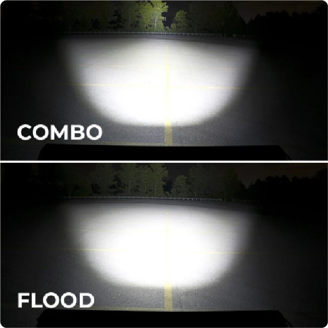 Packed with powerful CREE LEDs to ensure peak performance. The flood beam is perfect for getting maximum coverage, while the combo beam offers an ideal blend of long range vision and area coverage.