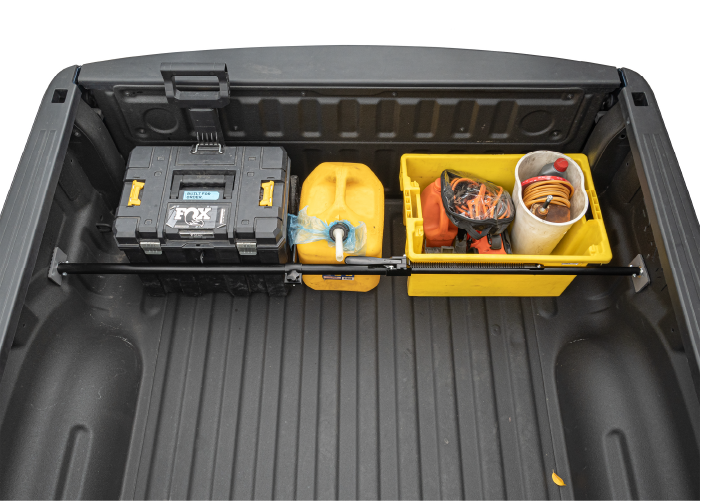 Is an adjustable cargo bar with a ratcheting mechanism, designed to secure cargo in the bed of a pickup truck, SUV, or even in a vehicle’s trunk. Its main function is to prevent objects from shifting during transit, keeping them stable and organized.